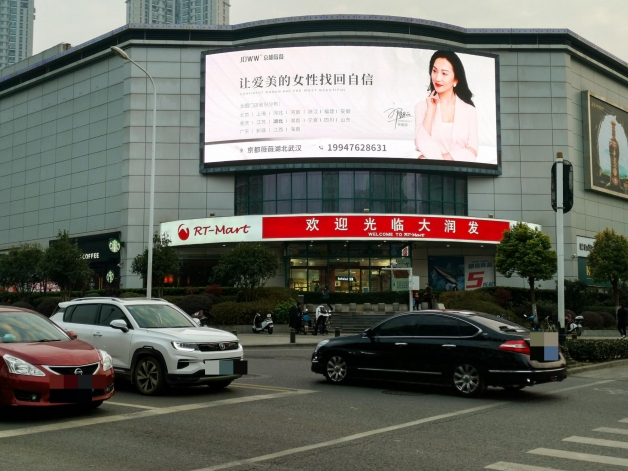 武漢戶外地標LED廣告【解放大道大潤發墻體LED大屏】