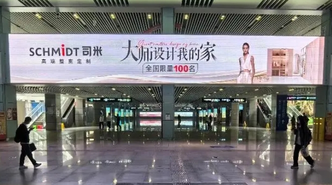 今年51假期,高鐵旅客流量再創(chuàng)歷史新高,SCHMIDT司米品牌傳播借勢而上。基于高鐵廣告?zhèn)鞑ジ吒采w面與權(quán)威性等特征,在交通樞紐高端媒體上展開戰(zhàn)略式滲透布局,進一步加深全國消費者對SCHMIDT司米“高端整案定制”品牌定位的認知與了解。