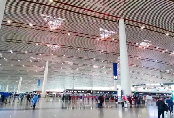 北京大興國際機場,位于中國北京市大興區(qū)榆垡鎮(zhèn)、禮賢鎮(zhèn)和河北省廊坊市廣陽區(qū)之間,北距天安門46千米、北距北京首都國際機場67千米、南距雄安新區(qū)55千米、西距北京南郊機場約640米(圍場距離),為4F級國際機場、世界級航空樞紐、國家發(fā)展新動力源 。