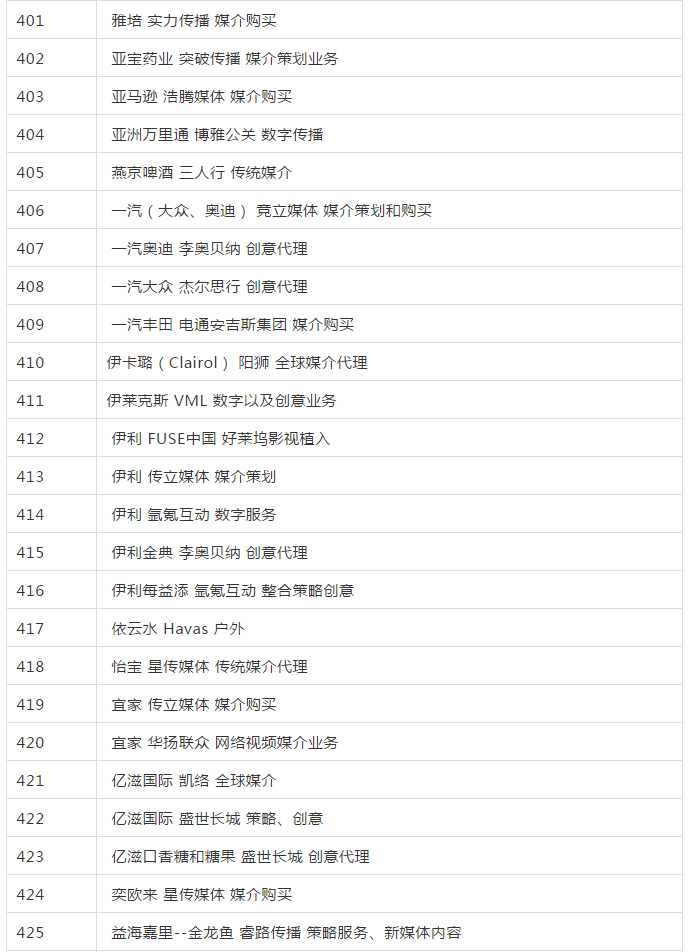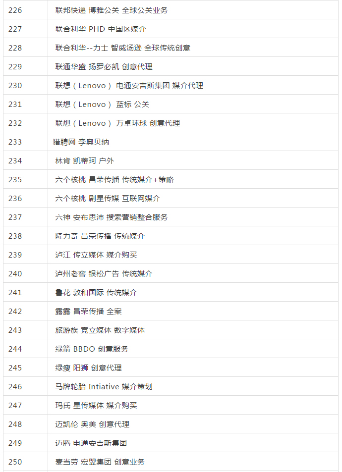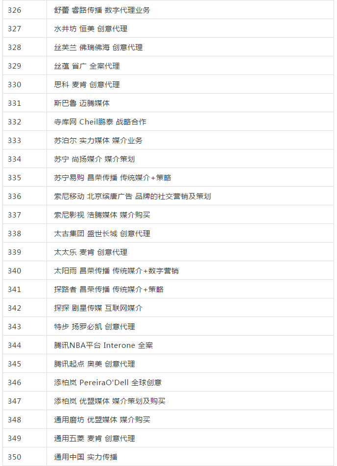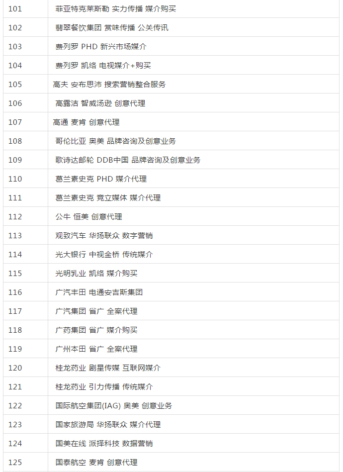 2019年全國(guó)品牌 4A廣告代理公司